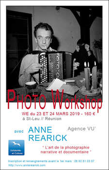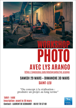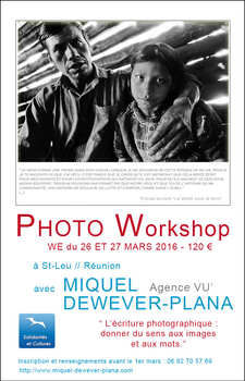 L'association contribue depuis plusieurs années maintenant à la formation des photographes professionnels de la Réunion en proposant des workshops de plusieurs jours avec des photographes de renommée internationale. Une collaboration fructueuse avec l'agence VU permet de proposer des profils de photographes et des thèmes en adéquation avec les problématiques contemporaines et les enjeux de sociétés. Nous avons pu ainsi accueillir Munem Wassif, Miquel Dewaever, Martina Bacigalupo, Anne Rearick, Cyril Zanettacci, Isabelle Eshraghi, Ferhat Bouda, Vanessa Winship, …
